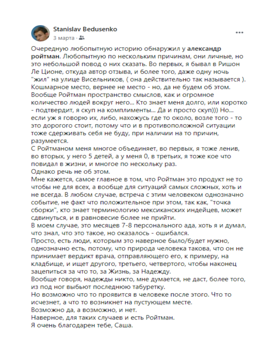 Станислав Бедусенко: "Я очень благодарен тебе, Саша"